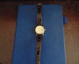 - Ladies QQ Dress Gold Tone Day/Date Gold Dial Brown Leather Strap Working