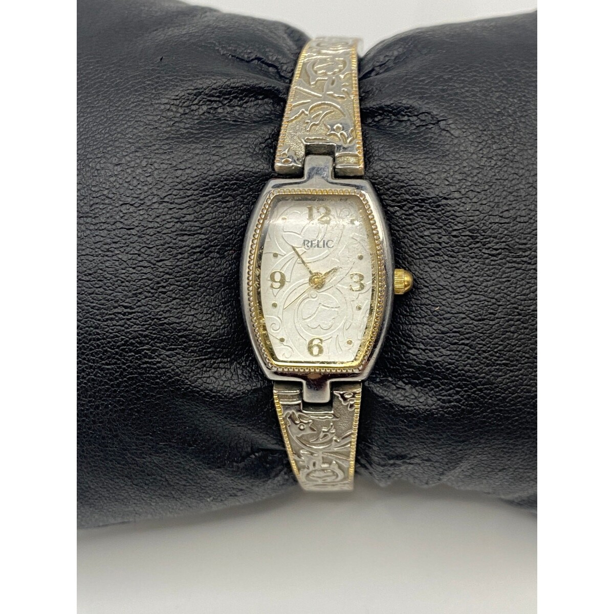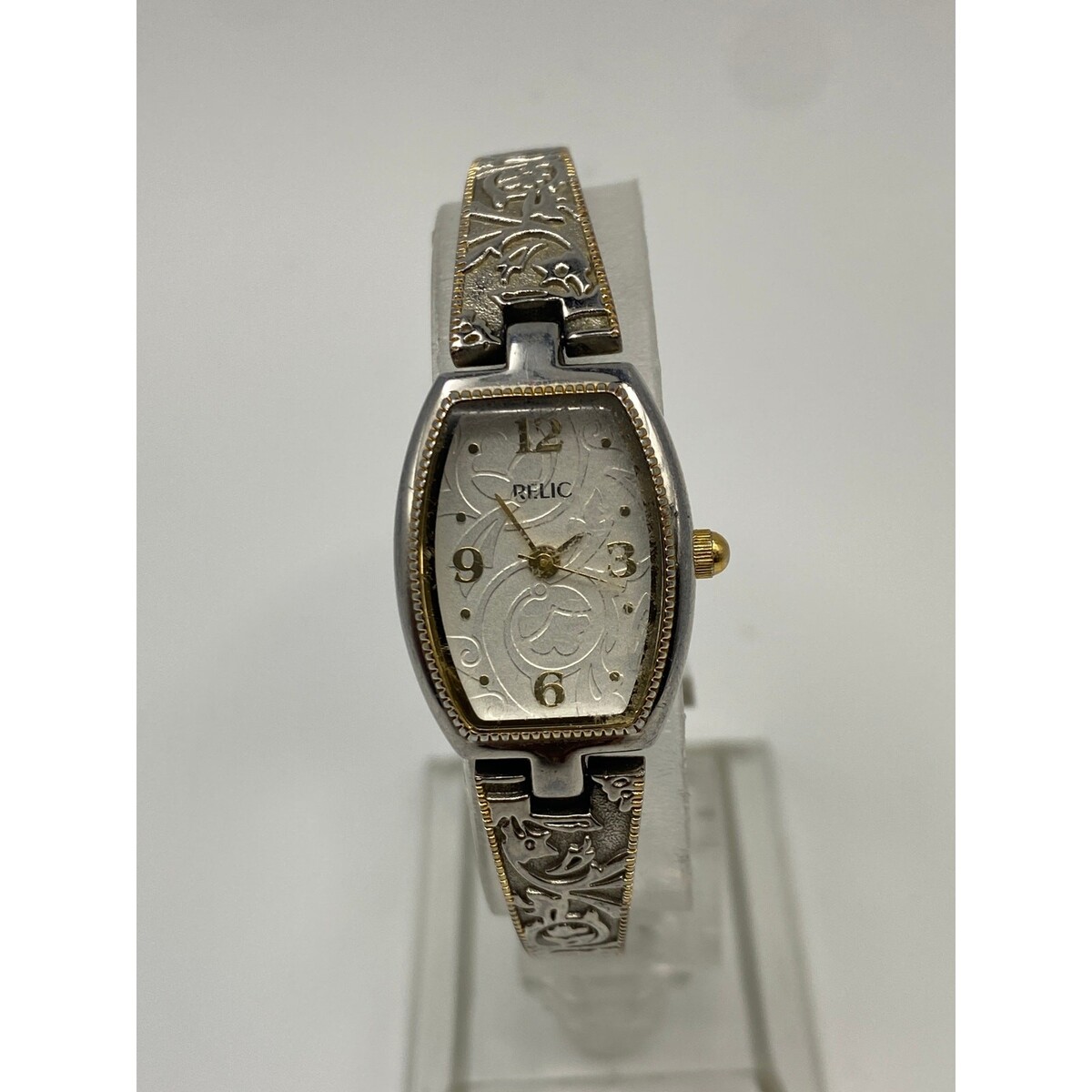 This stylish Relic ladies' watch features a sleek silver-tone stainless steel design. It's in excellent working condition and has a brand new battery, so it's ready to wear right out of the box!
