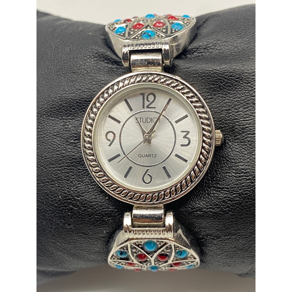 - Ladies Studio Time Silver Tone Double Clasps Watch Working New Battery