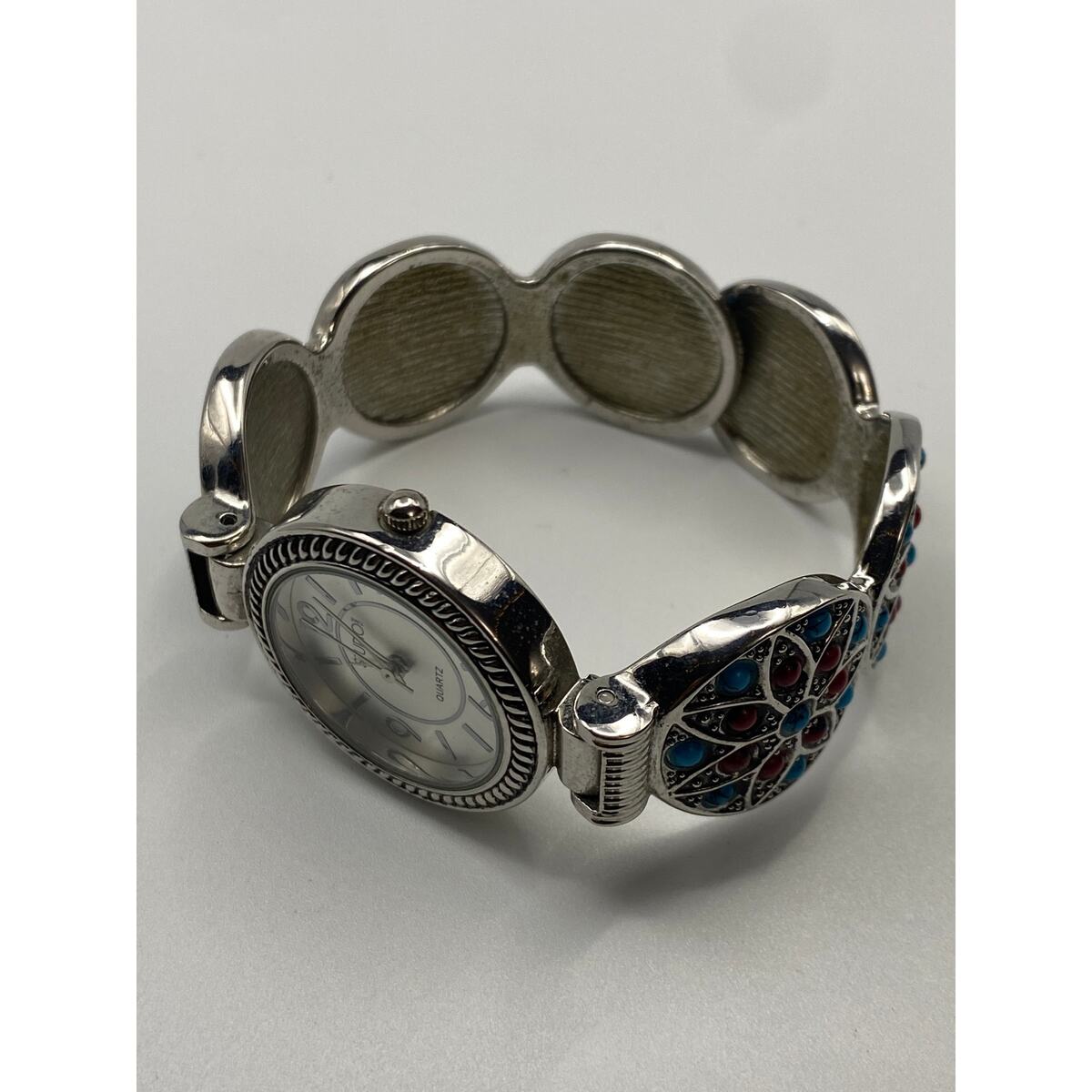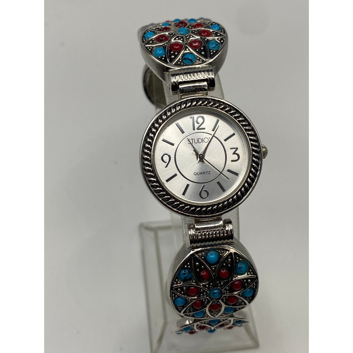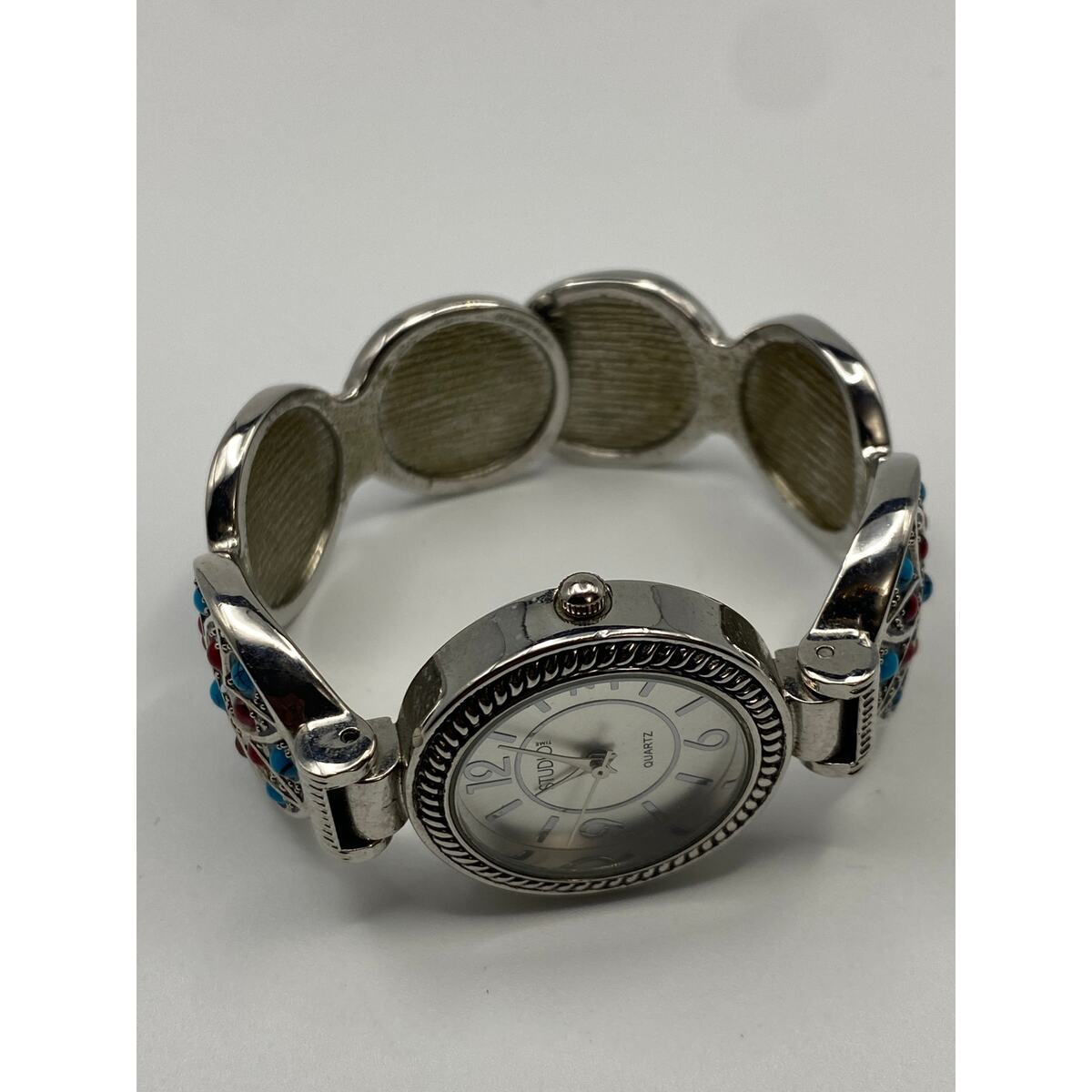 Ladies Studio Time Silver Tone Double Clasps Watch Working New Battery