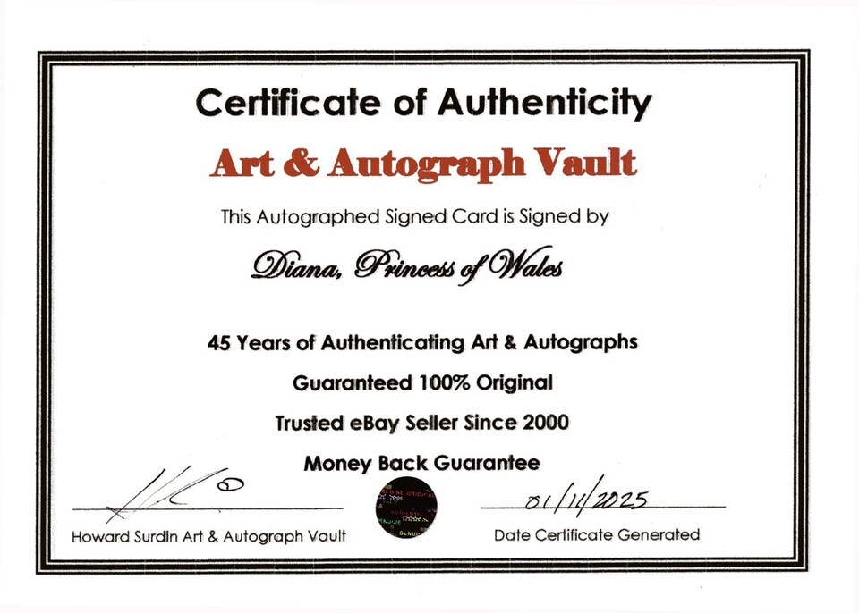 - Lady Diana Signature Document Museum Framed Ready to Display
