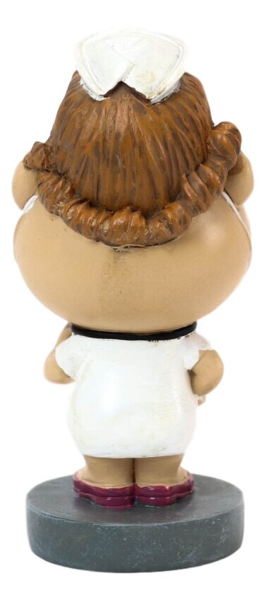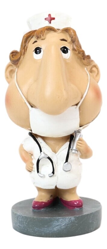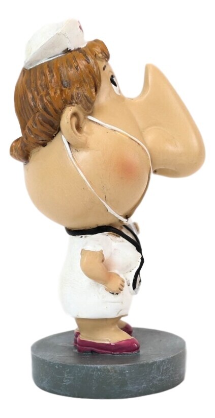 ? A dedicated nurse in full uniform has her mask on and stethoscope on standby. She wears a striking red colored flats to match her red cross on her hat. She is the perfect present for loved ones in your life who are nurses, whether they be retired or still on active duty!