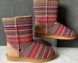 Lamo women's size 9 Juarez ankle boot is NEW in box. Sonoran Collection red striped textile upper with suede leather heel counter. Warm faux fur lining and insole. Durable TPR outsole so you can wear these comfortable pull-on boots inside and outdoors.