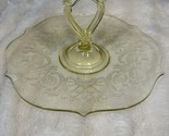 - Lancaster Glass Elegant Landrum Topaz Yellow Cut Design Center Handle Tray 1932