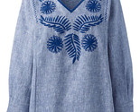 - LANDS' END Embroidered BLOUSE Size: SMALL New SHIP FREE Blue Linen Caftan / TOP