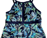 - Lands' End Navy Blue w Green Floral Halter Shelfbra Swimsuit Top Size 22W