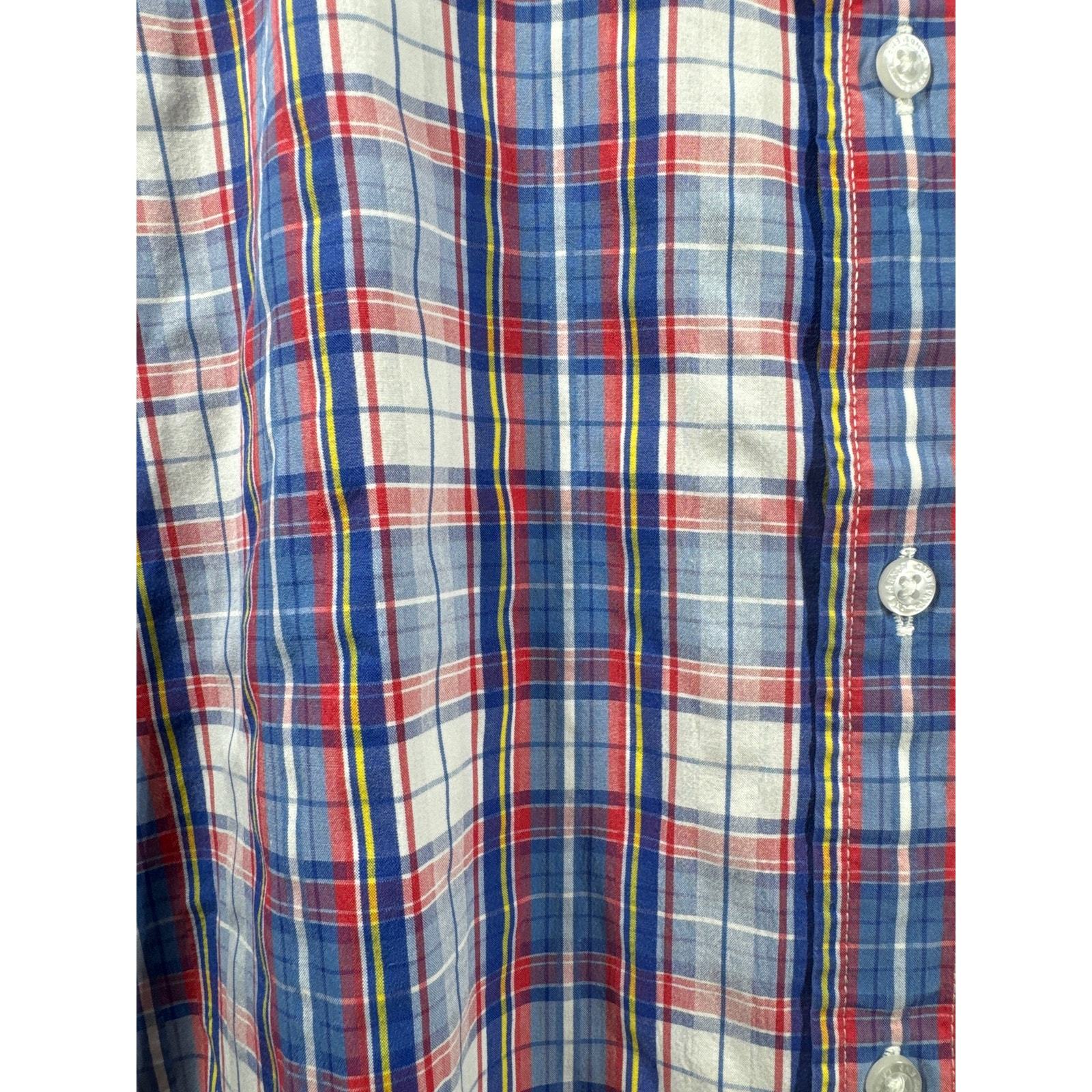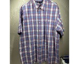 - Lands' End Pink Blue White Plaid Cotton Button Short Sleeve Shirt Size XXL