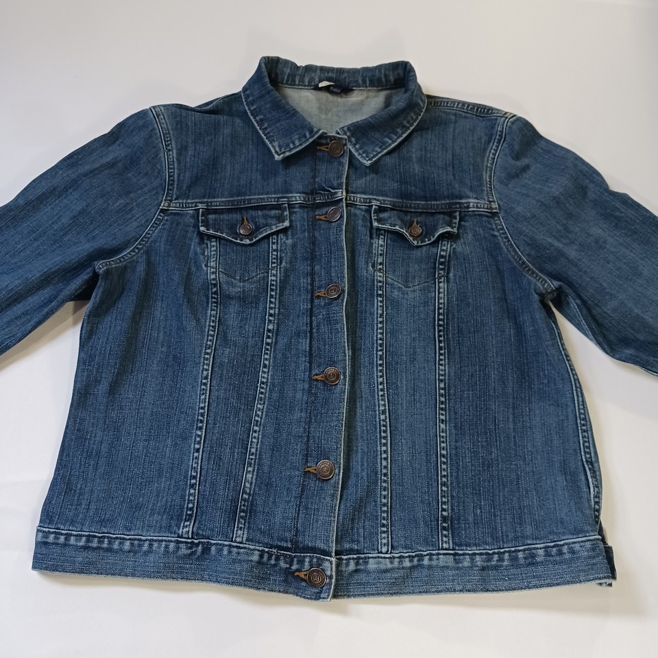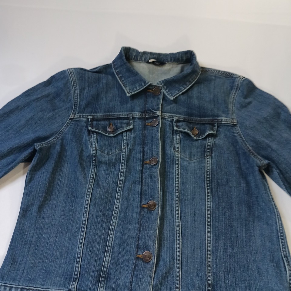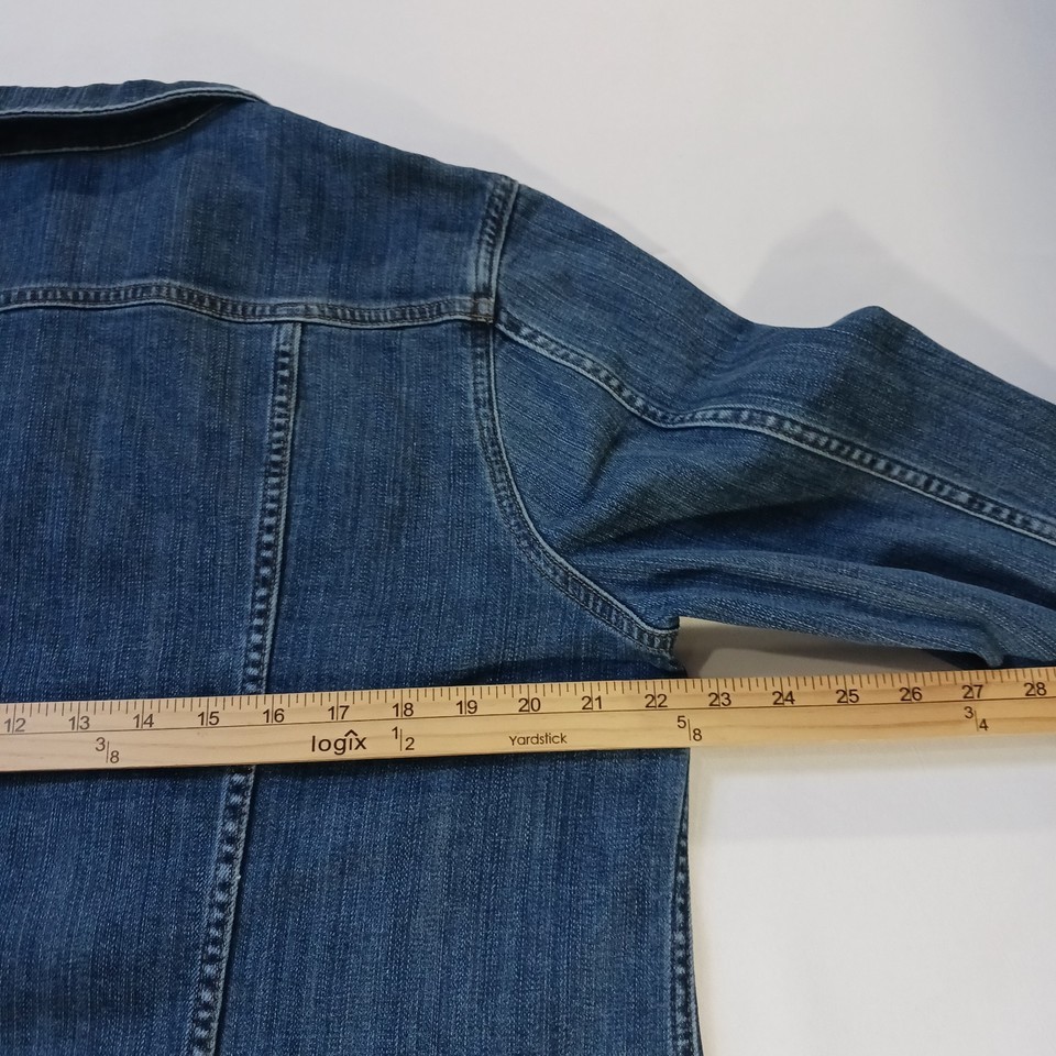- Lands' End Women’s Button Front Denim Jean Jacket Size XL Dark Wash Blue Pockets