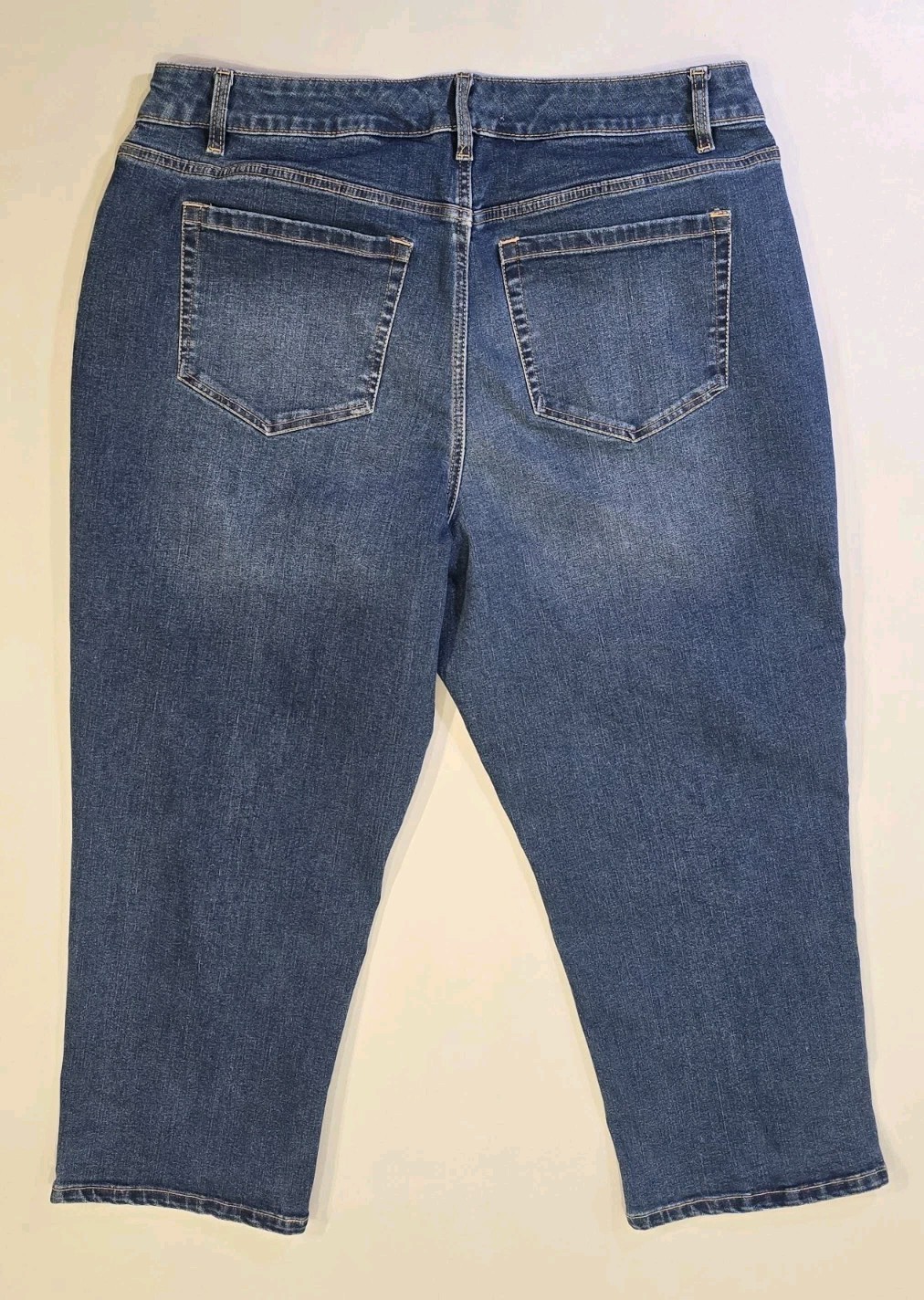 - Lane Bryant Mid-Rise Boyfriend Capri Jeans Womens 14 Flex Magic Waistband Blue