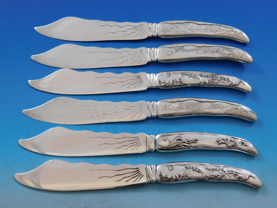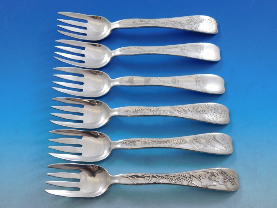 - Lap Over Edge Acid Etched Tiffany & Co. Sterling 24Pc Fish Set Birds Aesthetic