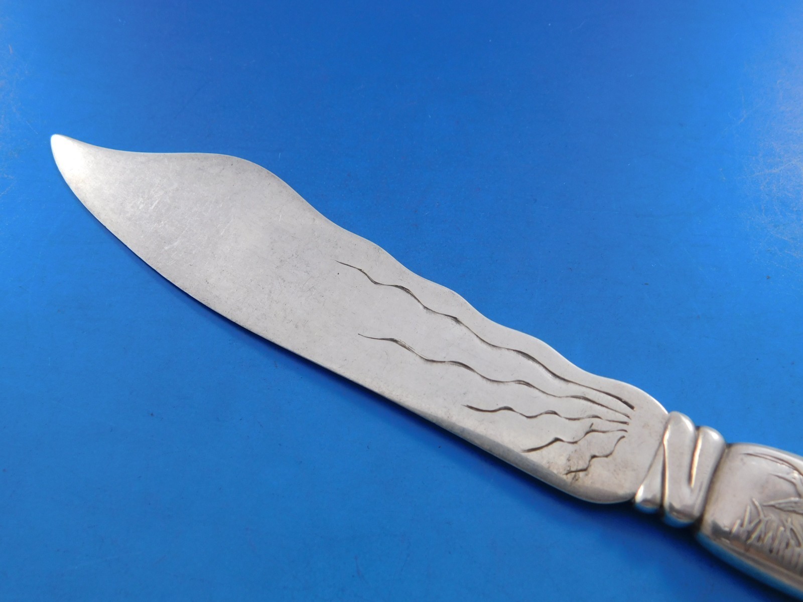 - Lap Over Edge Acid Etched Tiffany Sterling Silver Fish Knife Three Birds 7 7/8"