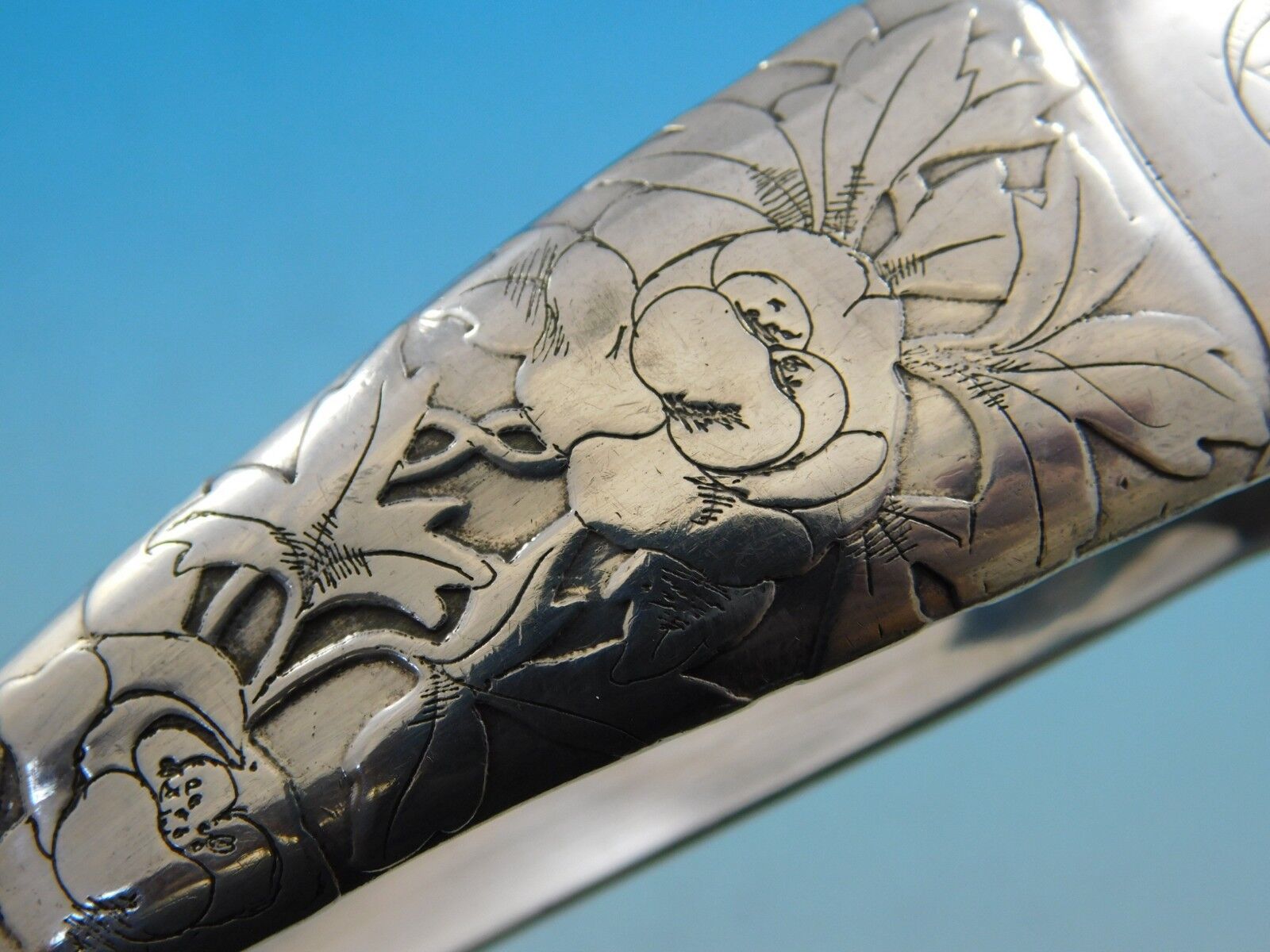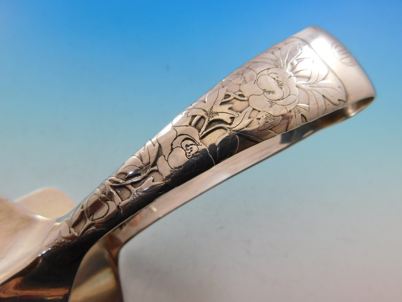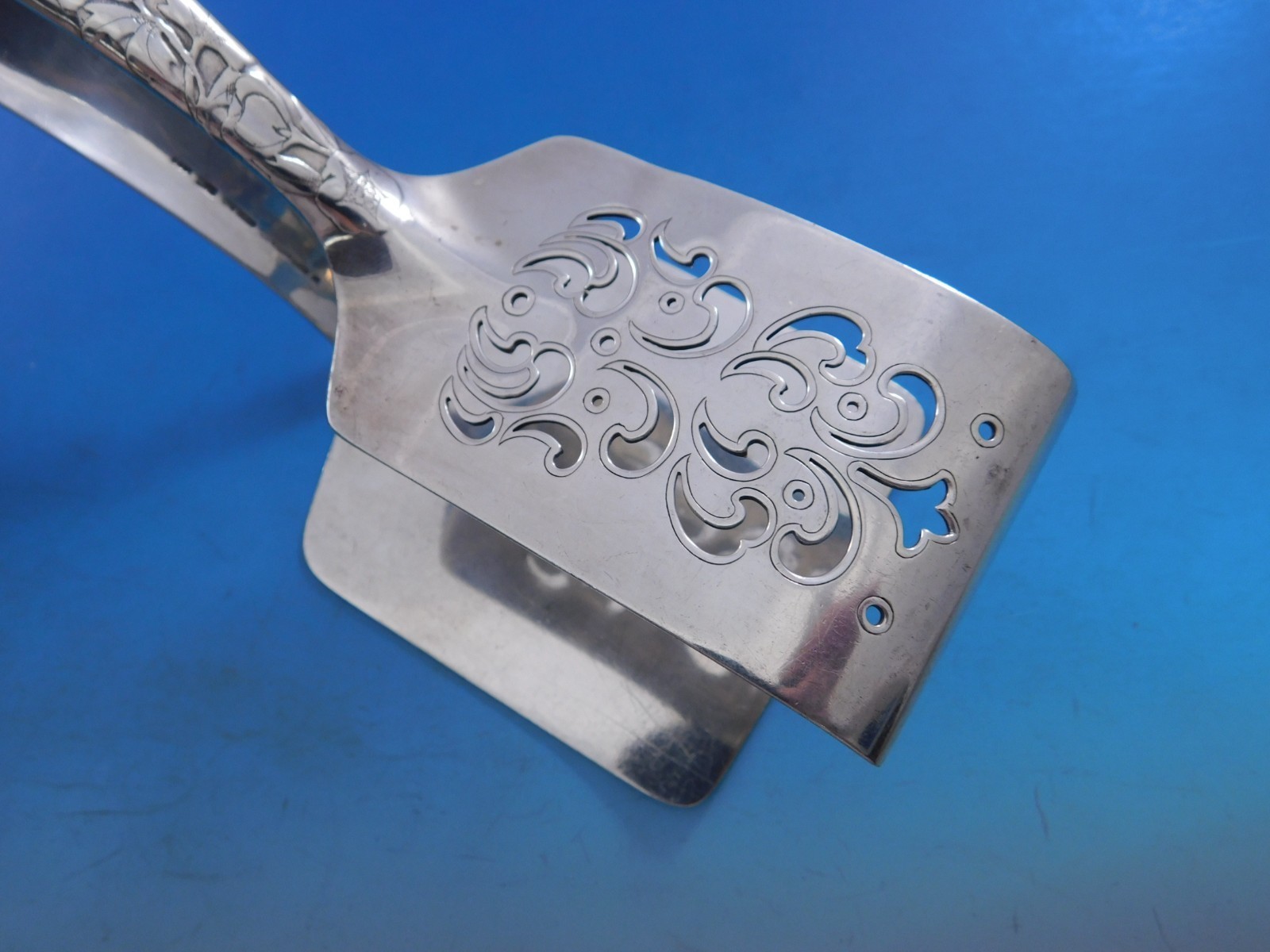 Lap Over Edge Acid Etched by Tiffany Sterling Silver Asparagus Tong Peony 7 1/4"