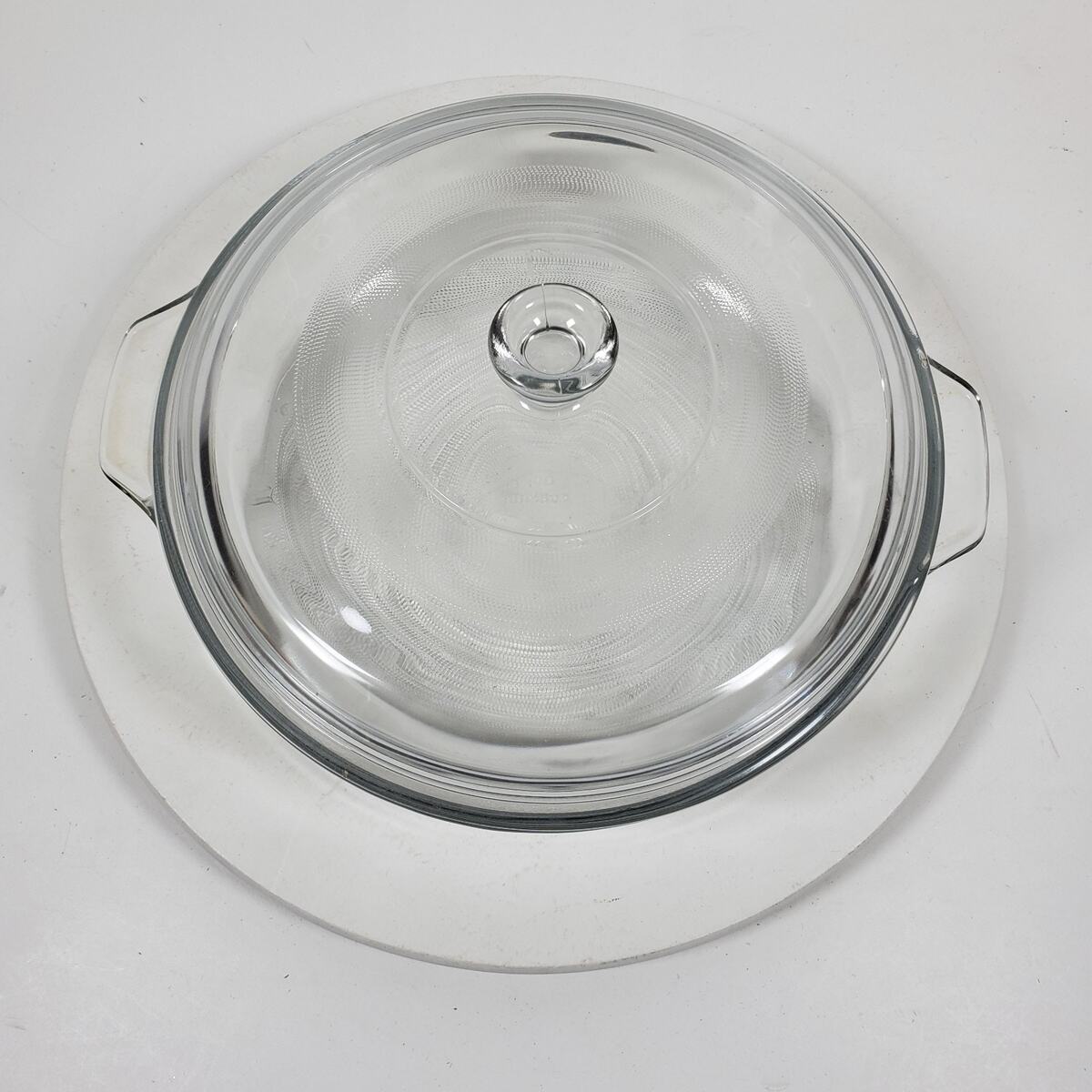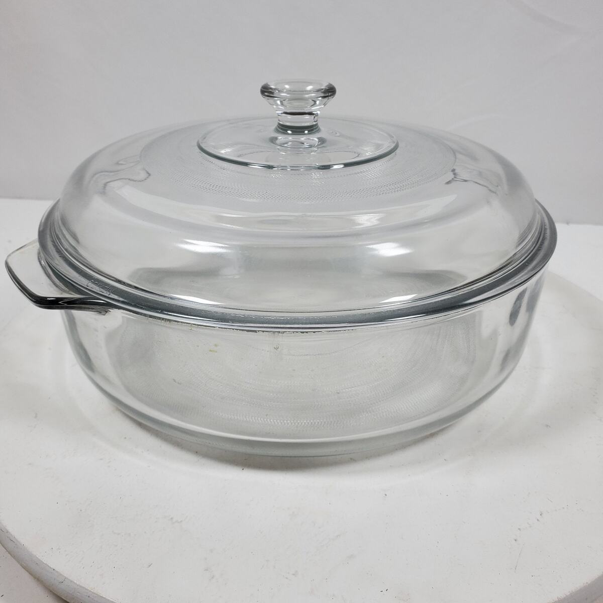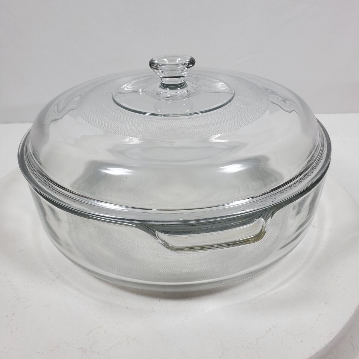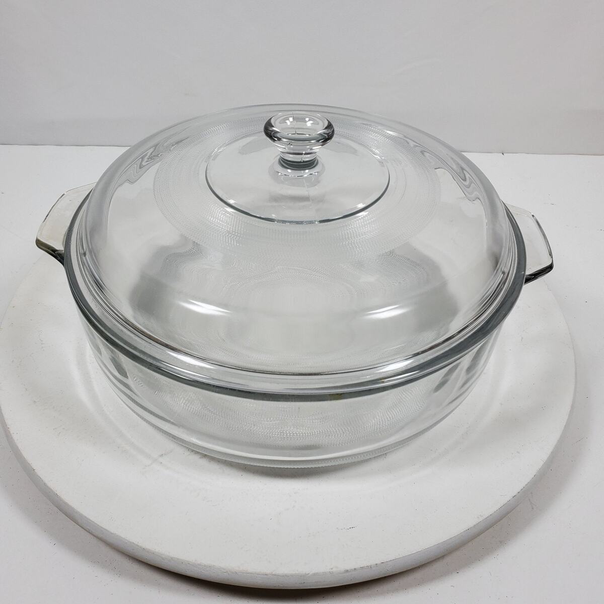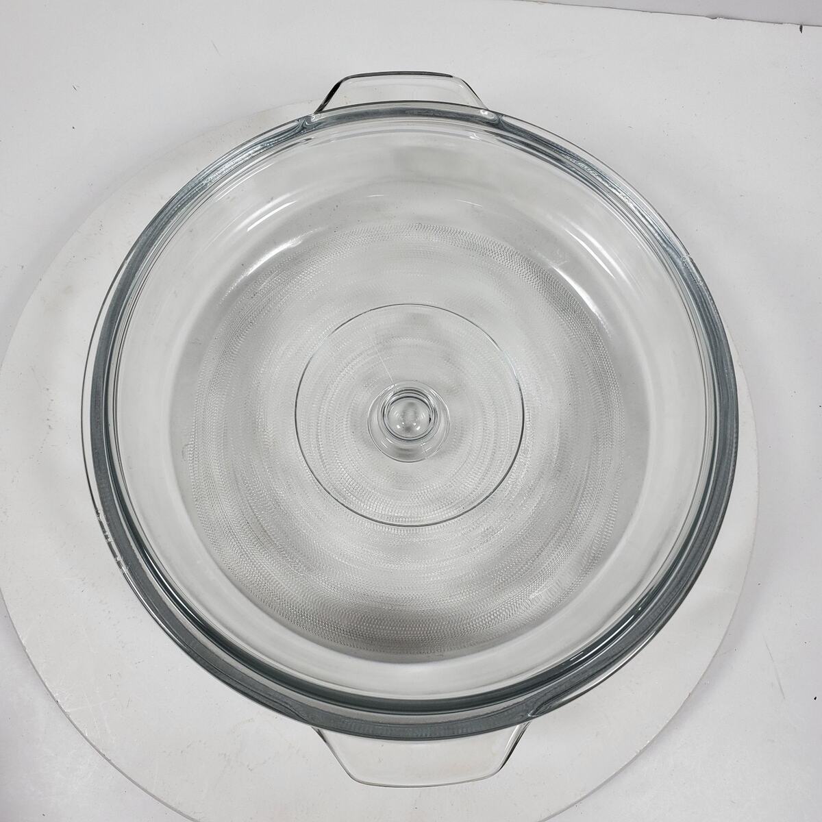 - Larg Casserole Baking Dish Clear Glass Round W/Handles 8” Diameter 3”Deep Mexico