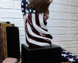 - Large 12" American Bald Eagle On Star Spangled Banner Flag Bust Statue With Base