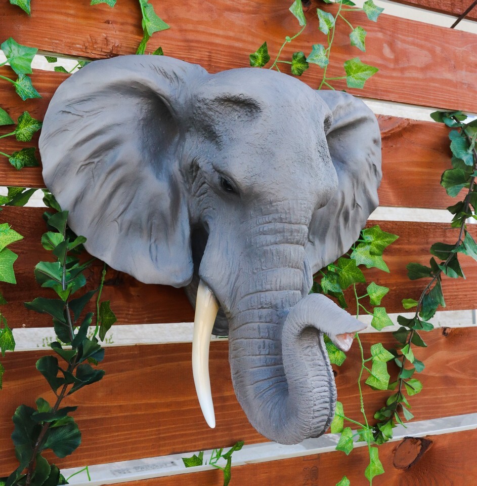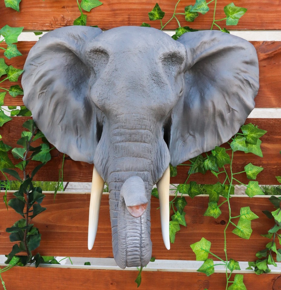 - Large 19"L Sahara Elephant Wall Bust For Home Decor Wall Plaque Hanging Statue