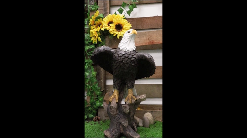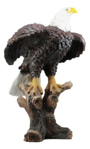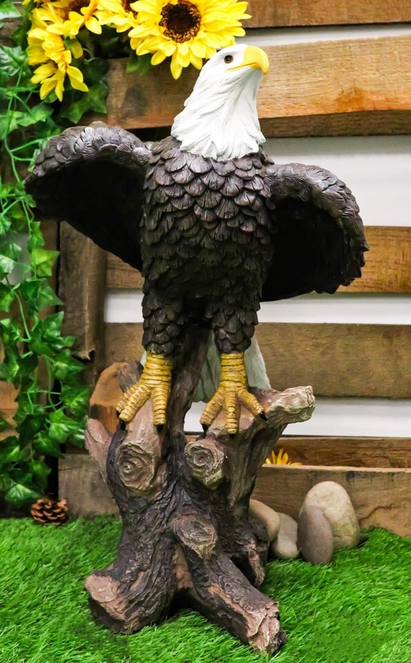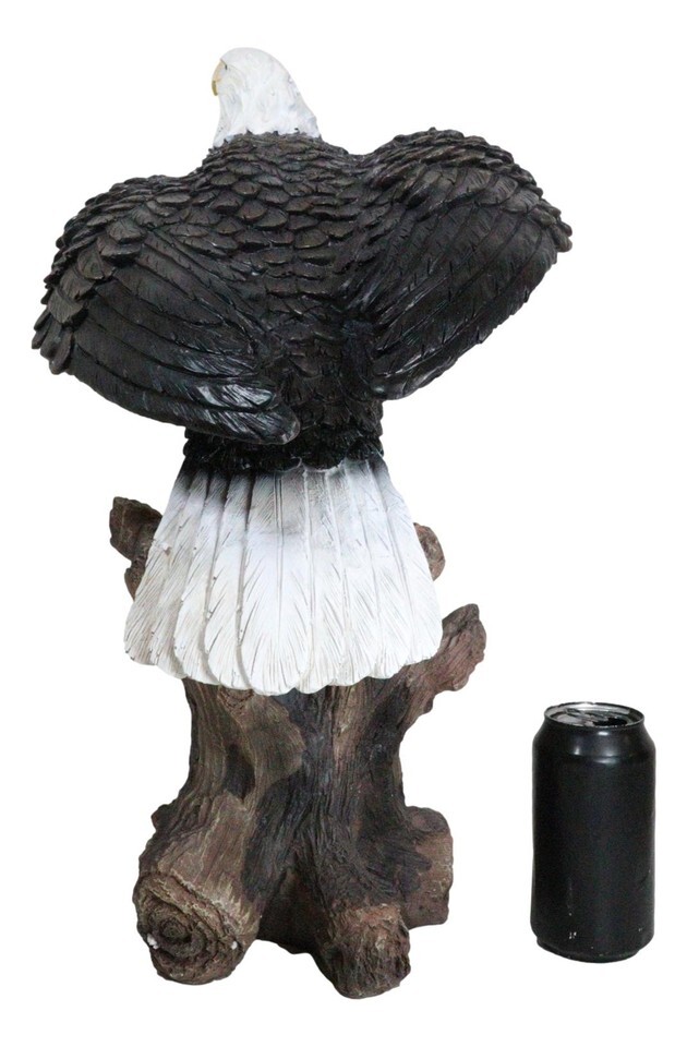 - Large 21"H American Pride Bald Eagle Perching On Tree Stump Statue Patriotic Art