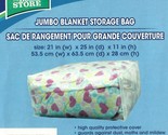 FOR SALE IS ONE (1) NEW JUMBO BLANKET ZIPPER STORAGE BAG DIMENSIONS 21" wide x 25" deep x 11" height MANUFACTURED BY THE HOME STORE BRAND MPN 186743 UPC# 639277467430. THIS HIGH QUALITY FROSTED WHITE AND THIN PROTECTIVE COVER GUARDS AGAINST DUST, MOTHS, BUGS AND MILDEW. BIG ENOUGH TO FIT COMFORTERS, QUILTS AND BULKY GARMENTS. ZIPPERED FOR EASY ACCESS, SLIDE UNDER YOUR BED OR STACK IN CLOSET OR ATTIC. THIS STORAGE BAG IS NOT THE HEAVY DUTY, THICK PLASTIC TYPE, BUT, MADE OF A THINNER, MORE DELICATE PLASTIC THAT CONFORMS TO THE CONTENTS. IF YOU REQUIRE A HEAVIER DUTY STORAGE BAG SEE MY ZIPLOC BIG BAGS (thick and durable) OR ZIPLOC FLEXIBLE STORAGE TOTES (thickER and more durable). YOU WILL RECEIVE ONE (1) NEW HOME STORE BRAND JUMBO BLANKET ZIPPERED STORAGE BAG SHIPPED BY USPS.....