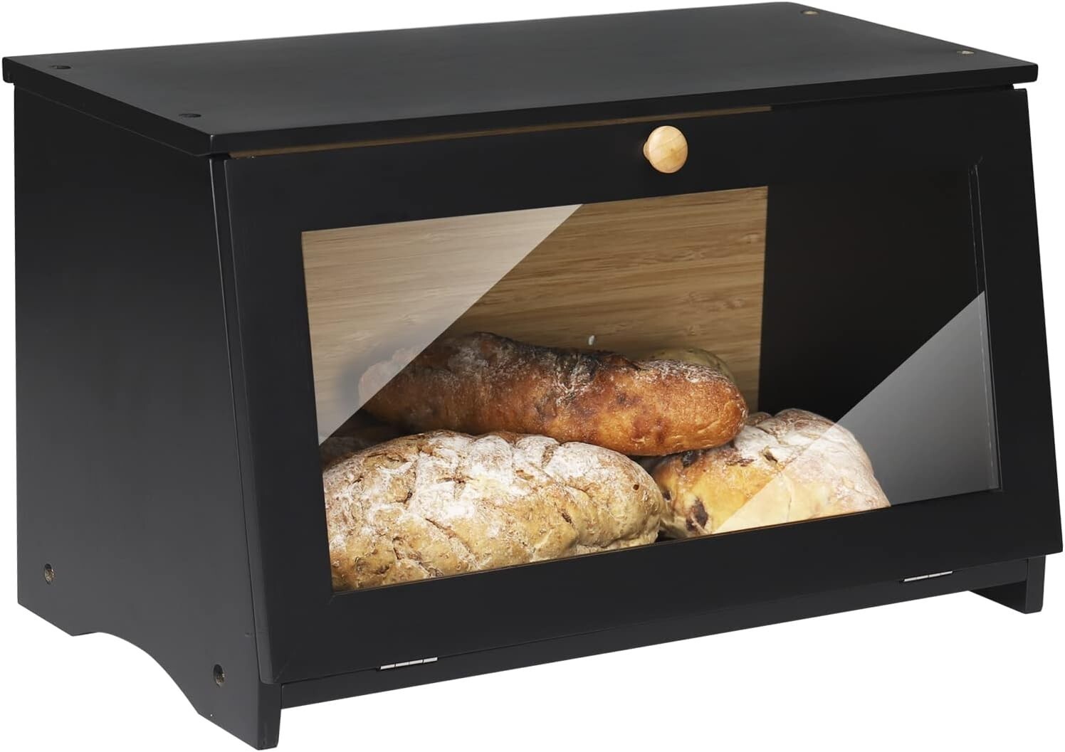 - Large Capacity Bamboo Bread Storage Bin - Stylish & Freshness Preserving Design