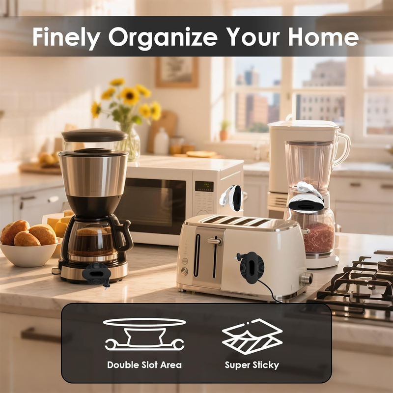 ?Wide Compatibility for Home Office? - Securely sticks to glass, ceramics, wooden board, plastic, metal, tiles, wallpaper, and leather. Perfect for all kitchen appliances (coffee machines, air fryers, blenders, etc.) and any other scene that needs cord organization, like office areas and households.