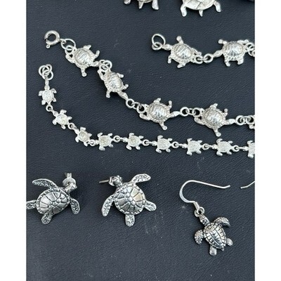 LARGE COLLECTION OF 925 STERLING SILVER TURTLE RELATED JEWELRY SKY