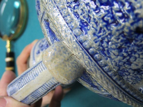 Large German antique porcelain TANKARD BEER STEIN relief[aB]