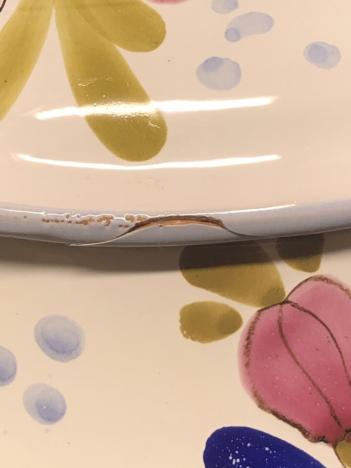 Small chip on 1 handle. Chip in lid. See photos as part of the description.