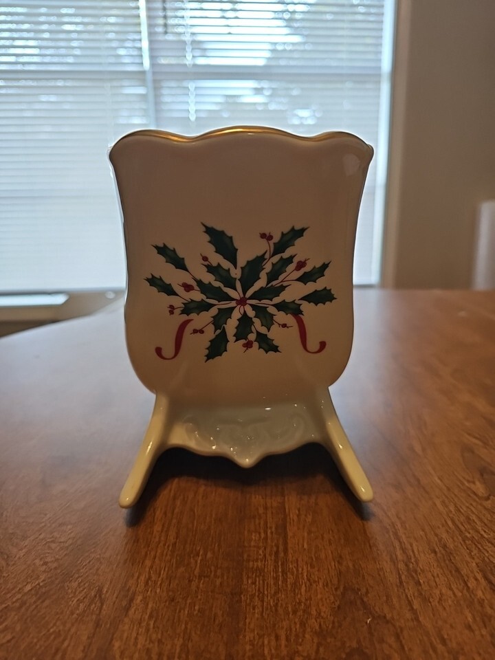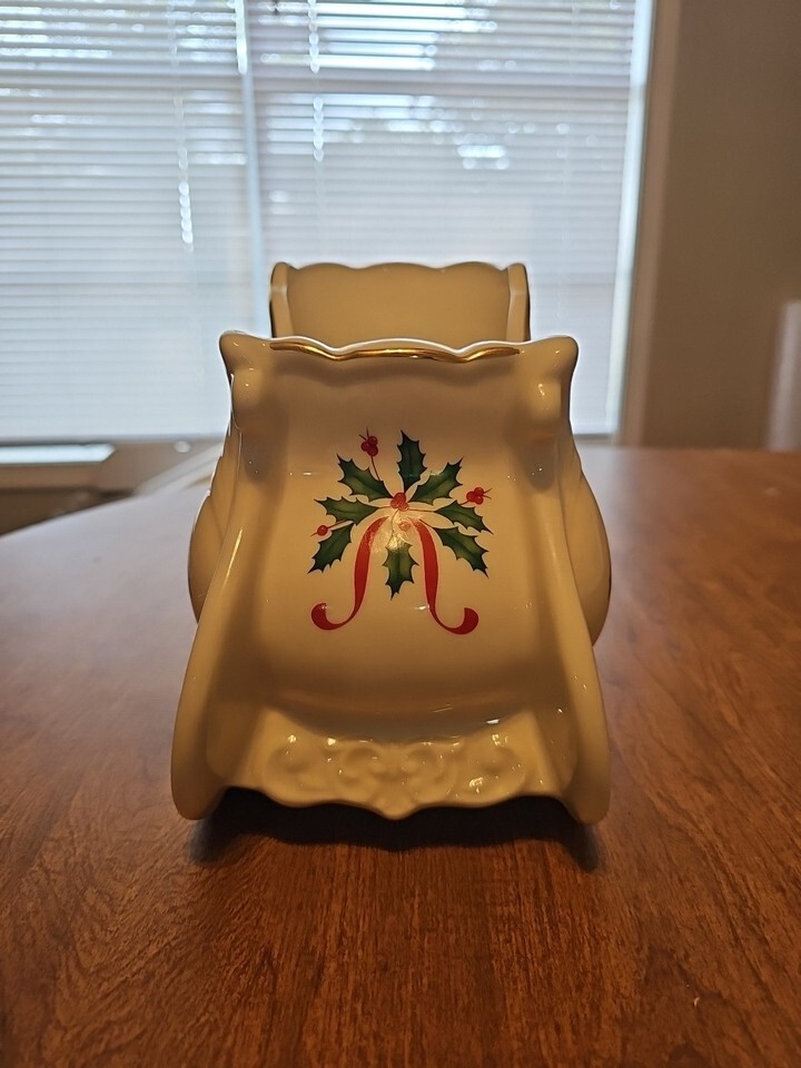 - Large Lenox Holiday Sleigh Centerpiece Holly Red Bow Gold Trim Made in the USA