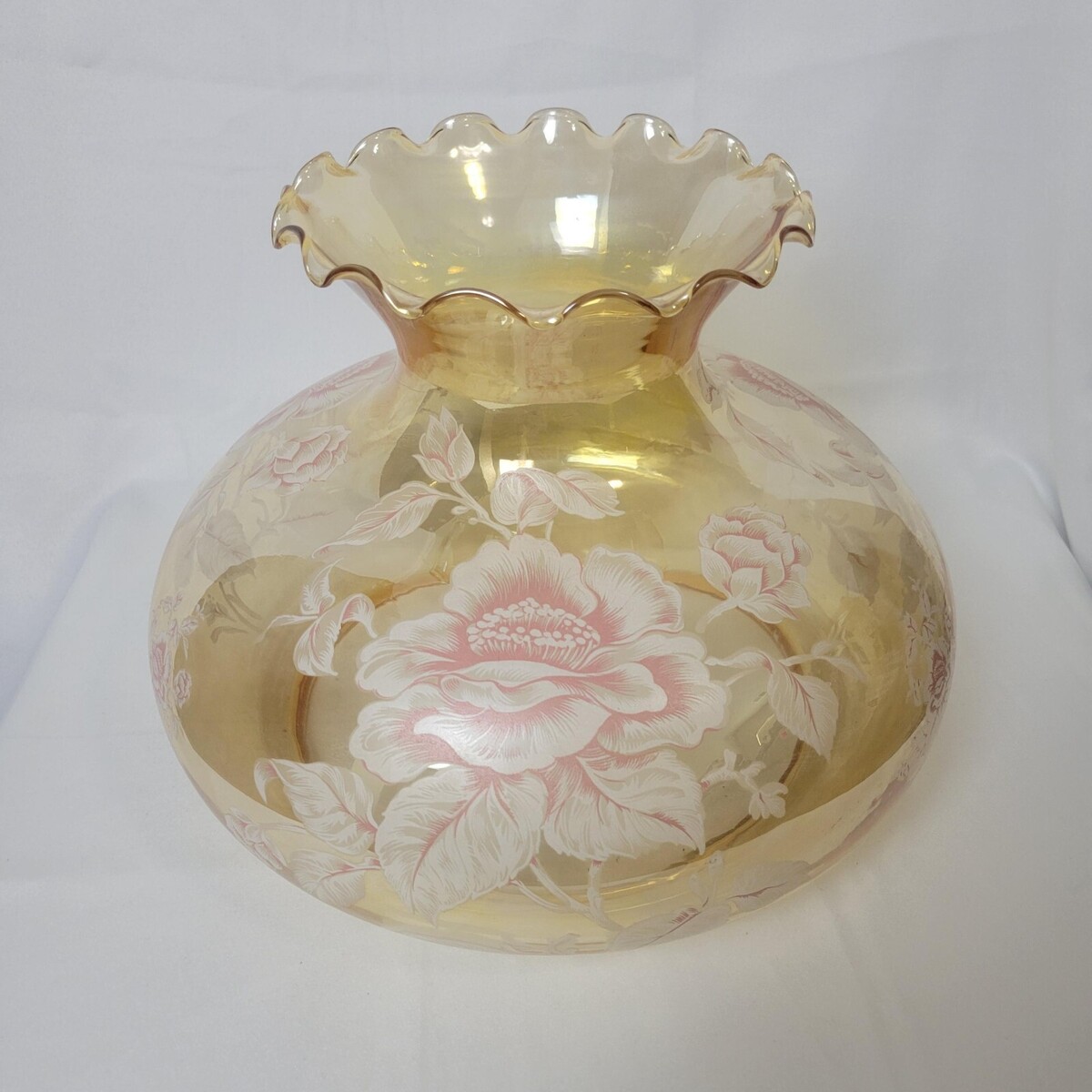 - Large Parlor Lampshade Iridescent Champagne White Pink Roses Floral 9.75" Fitter