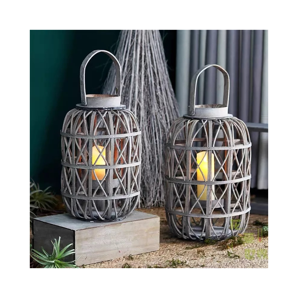 Farmhouse Decor Wicker Lanterns Large Retro Rustic Rattan Lantern Woven Willow