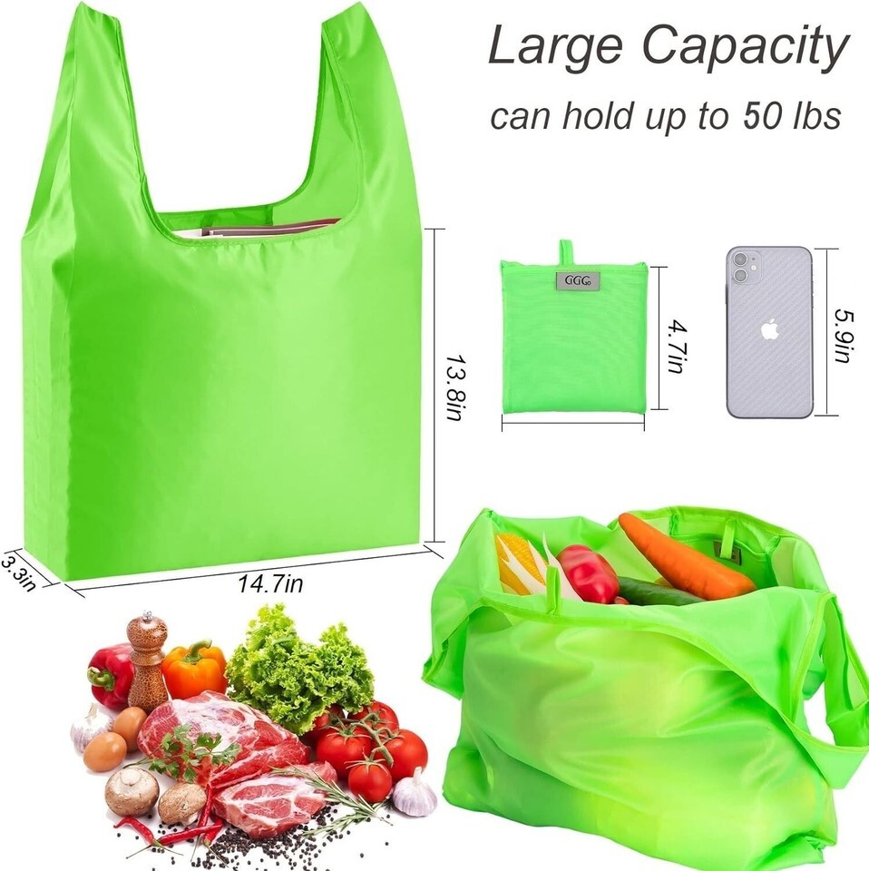 Foldable Convenience and Easy to Carry Around: The reusable shopping bags can easily fold into the attached pocket-size pouch, so you can carry grocery bags in your purse or car without taking up too much space. It is very convenient for groceries, shopping and traveling by using reusable grocery bags.