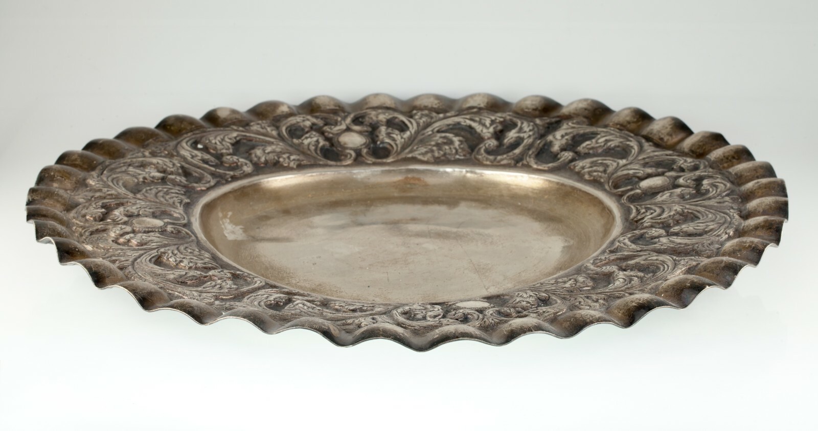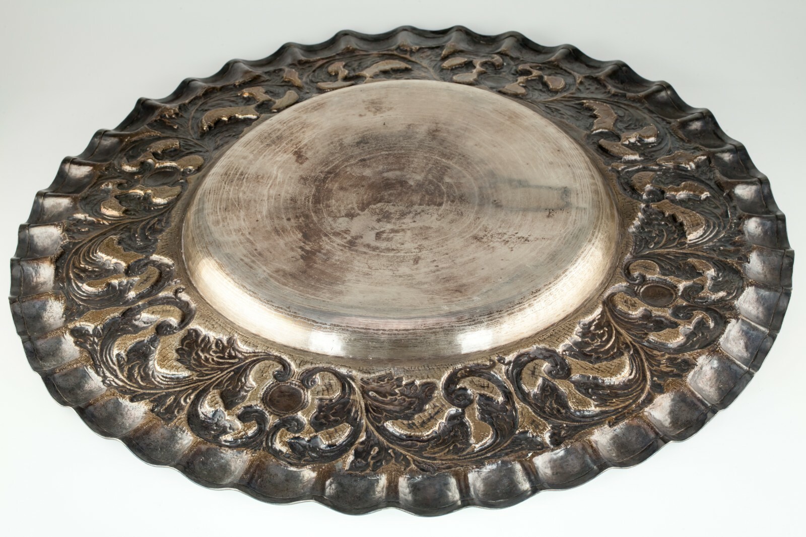- Large Silver Tray with Hand-Chased Repousse Design 40 Oz Nice