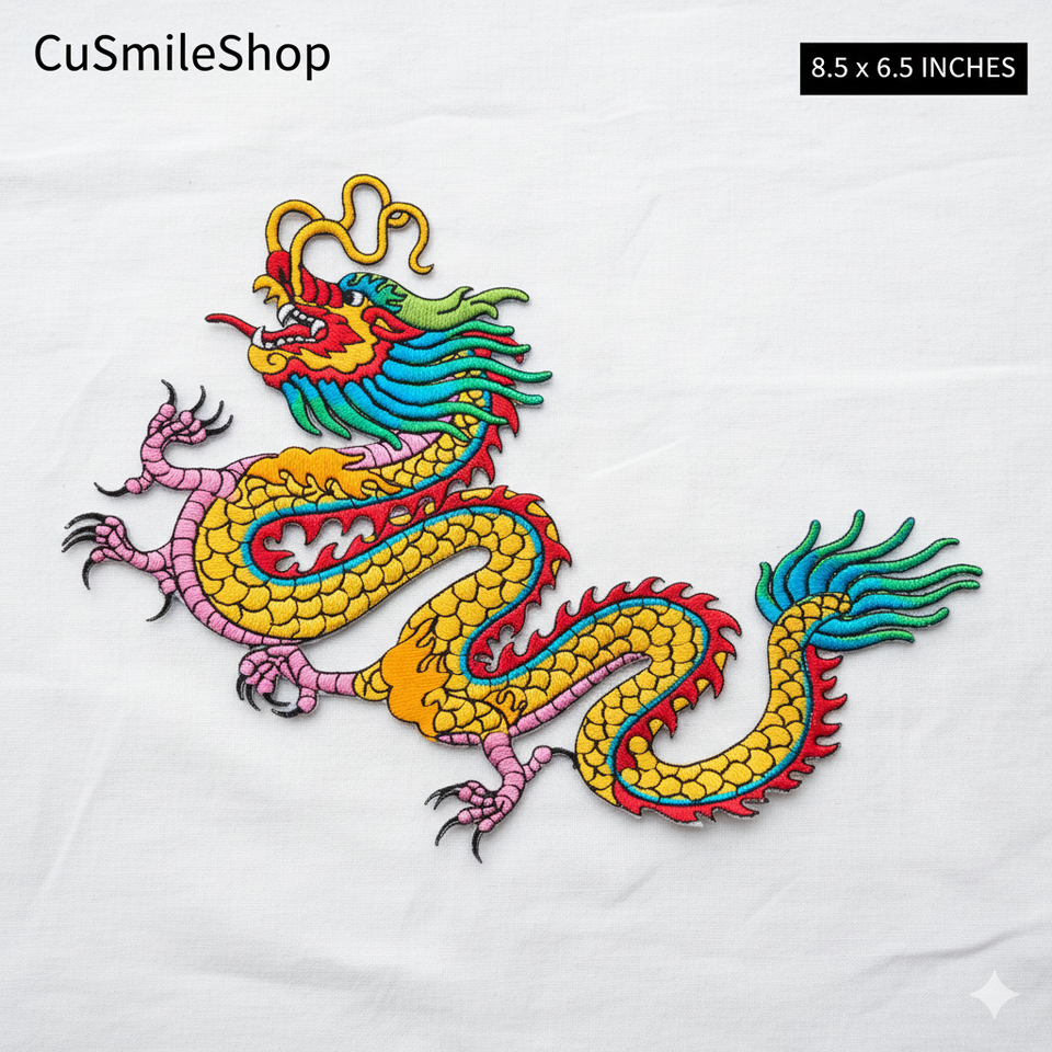 - Large XL Asian Dragon Embroidered Patch Applique Multi Color for Jackets Shirt