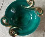 Large vintage French ceramic fruit dish bowl signed green gold STUNNING