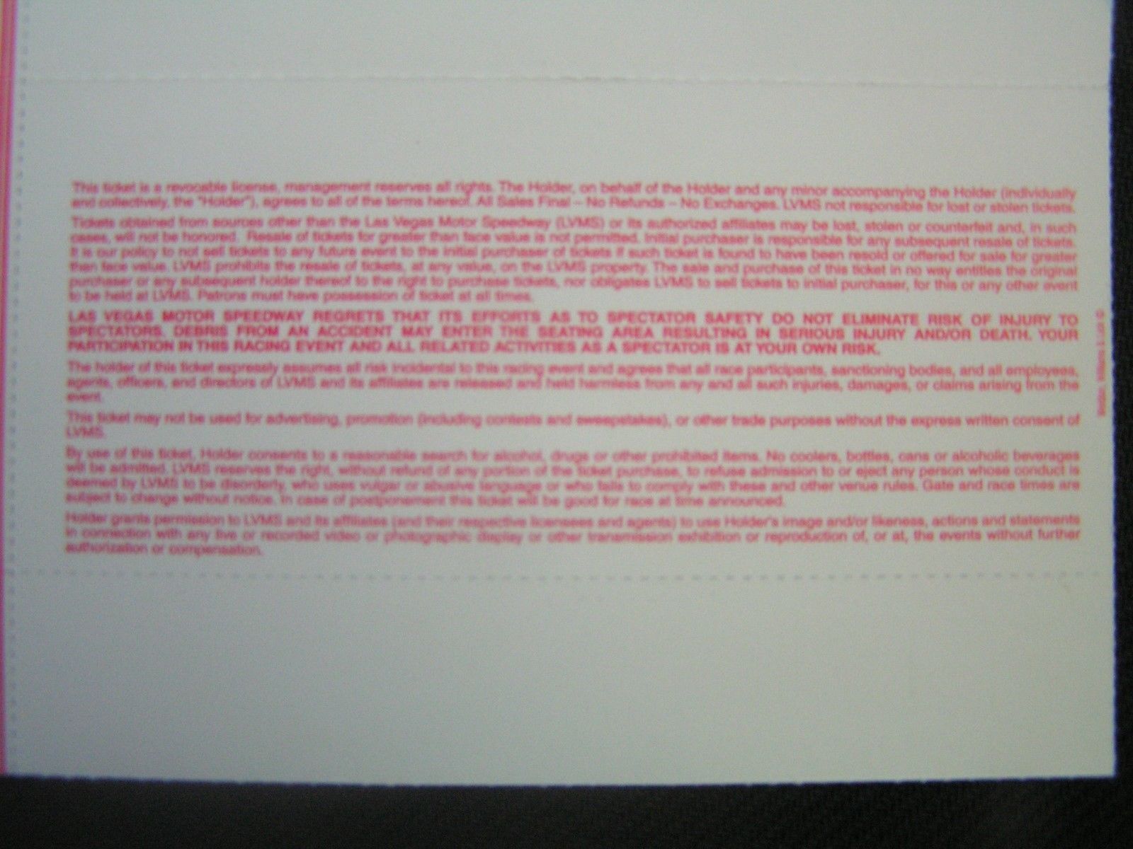 - Las Vegas Motor Speedway Qualifying Day Napa 2/28/2003 Full Unused Ticket Stub