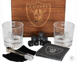 Las Vegas Raiders Drinkware Set Glasses Wood Box Coasters Cooling Cubes NFL