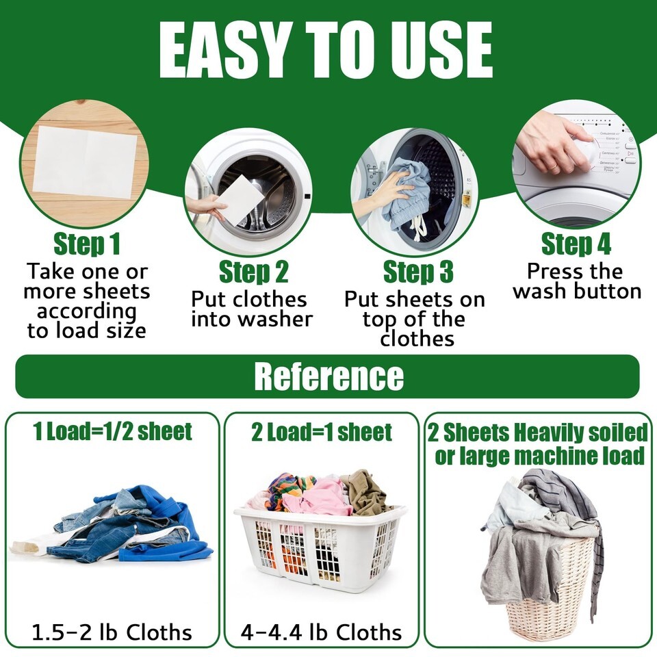 Easy to Carry Use - Laundry sheets occupy little space in your drawer or cabinet. As they are as light and thin as pieces of paper, they add almost no weight to your luggage. Every piece of sheet has been pre-cut and pre-measured. Laundry sheets dissolve quickly in both hot and cold water and can be used in conventional and washing machines.