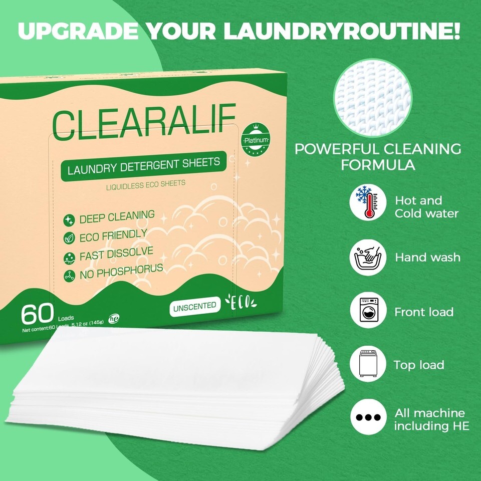 - Laundry Detergent Sheets Up to 60 Loads Fresh Unscented Lightweight Eco Friendly