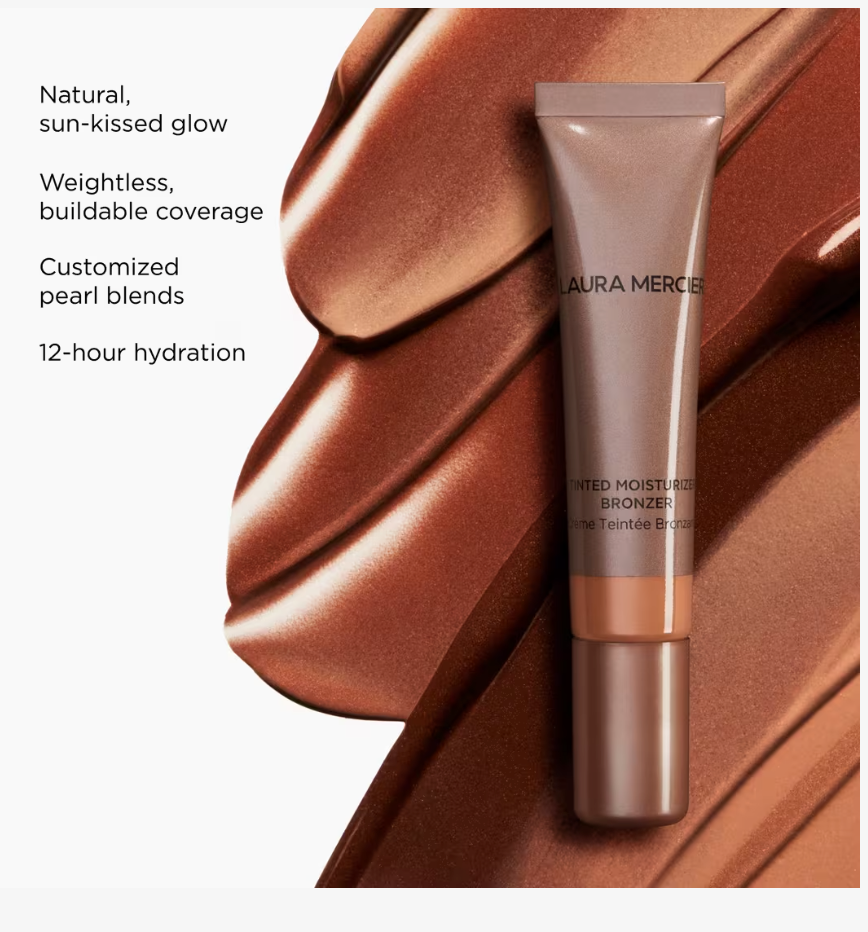 Laura Mercier's Tinted Moisturizer Cream Bronzer has all the benefits of a tinted moisturizer for the perfect sun kissed glow and 12 hours of hydration. The next generation of the beloved Tinted Moisturizer family.