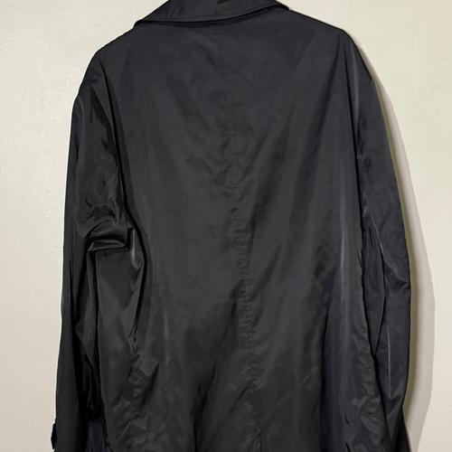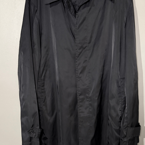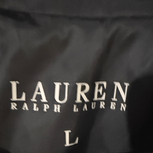 Sleek black raincoat by Lauren Ralph Lauren. Ideal for rainy days. Classic design with a modern touch.