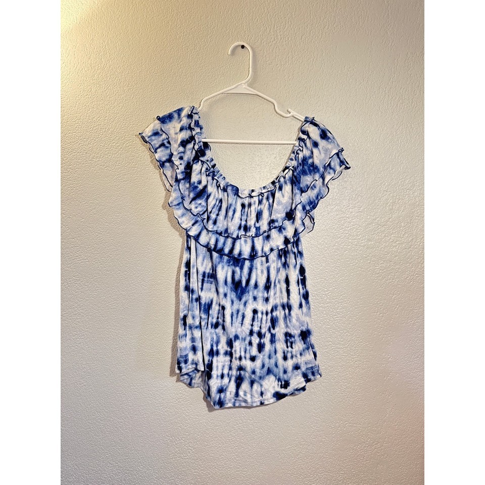 - Lauren Ralph Lauren XL Blue White Tie-Dye Bardot Blouse