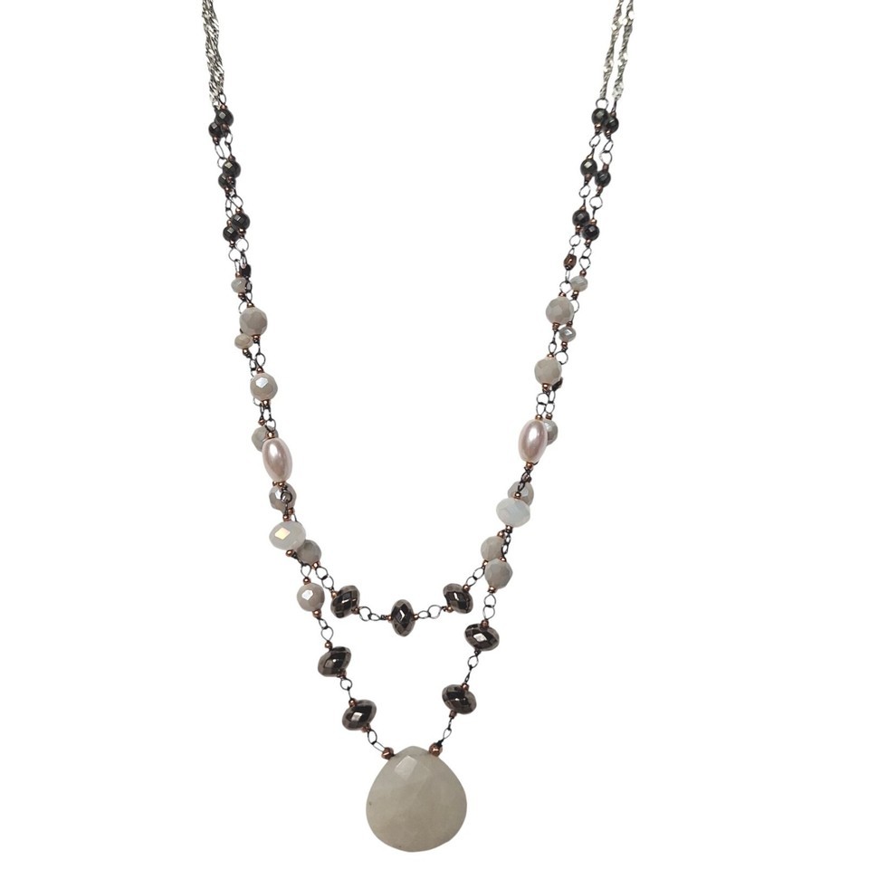 - Layered Pearl & Beaded Necklace With Teardrop Pendant Womens Costume Jewelry