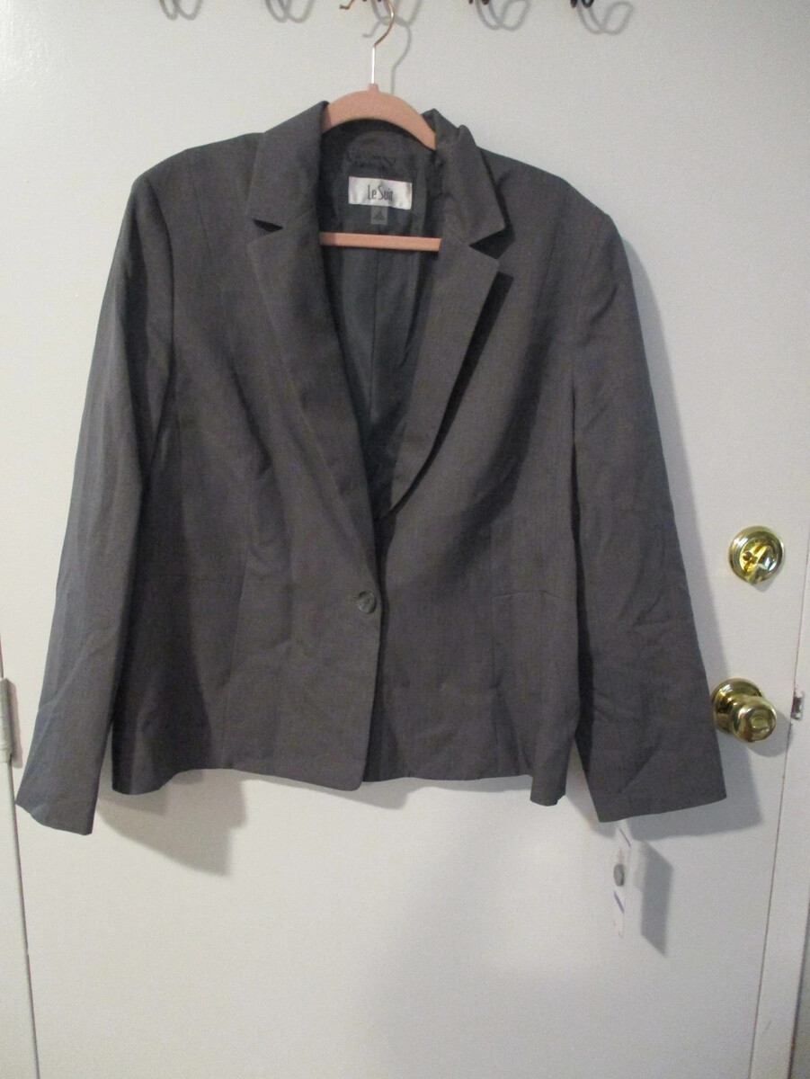 - Le Suit Womens Size 22W Notch Collar 2pc Pantsuit One Button Jacket Gray Career