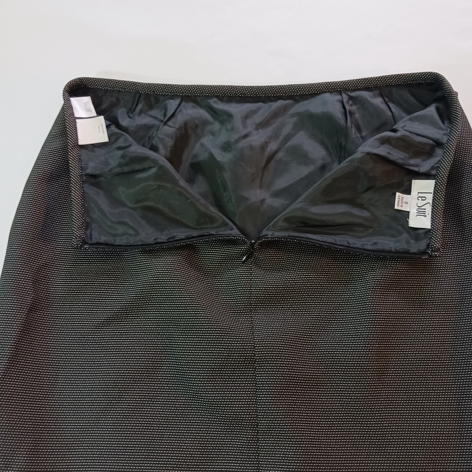 This A-line skirt has a length of 25", making it perfect for any occasion. It is a size 8 and has no signs of wear or tear. The Le Suit brand is known for its high-quality and timeless pieces, making this skirt a great addition to your wardrobe.