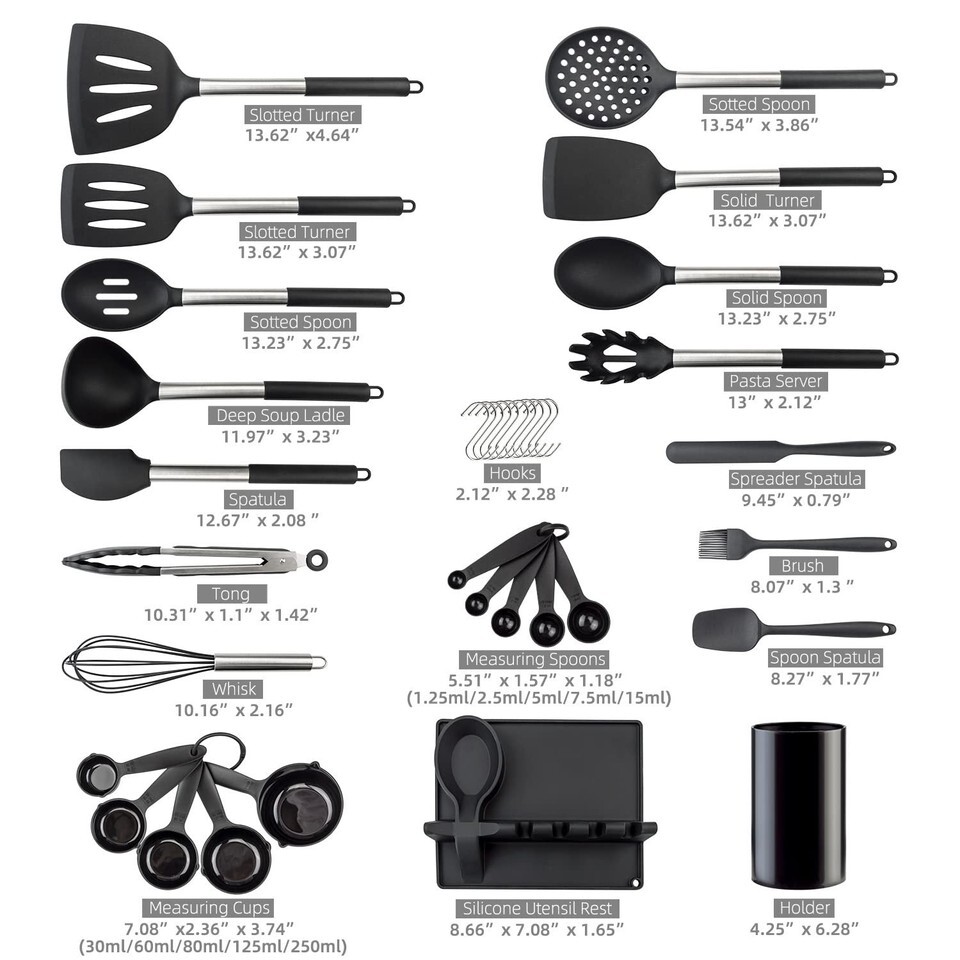 - LeMuna Silicone Kitchen Utensils Set Heat Resistant Stainless BPA Free