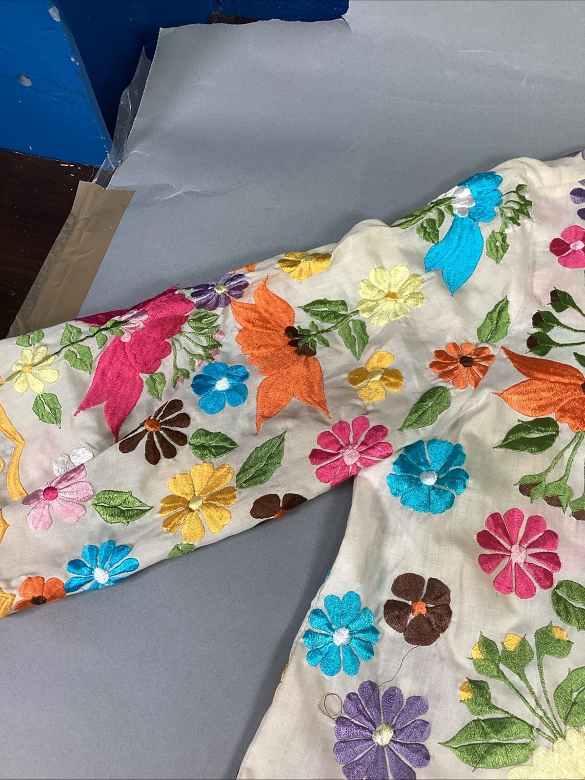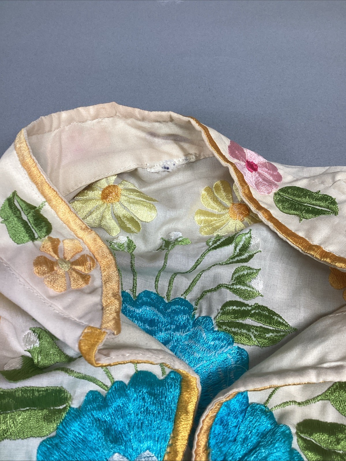 Leandra Crochet Embroidered Floral Bird Jacket Kimono - White - Rare