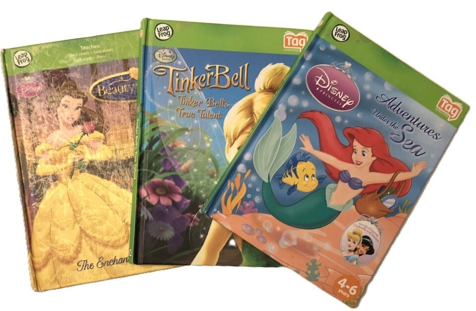 Set of three Leap Frog Tag books Beauty and the Beast, Tinkerbell and Adventures Under the Sea. The Beauty and the Beast book does have some wear, please see pictures. The Ariel and Tinkerbell books are in good, clean, pre-owned condition.