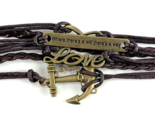 - Leather Multi Charm Bracelet Infinity Symbol Anchor Love & Phrase Rustic Gold
