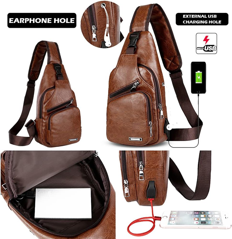 - Leather Sling Bag Mens Crossbody Bag Chest Bag Sling Backpack for Men with USB C