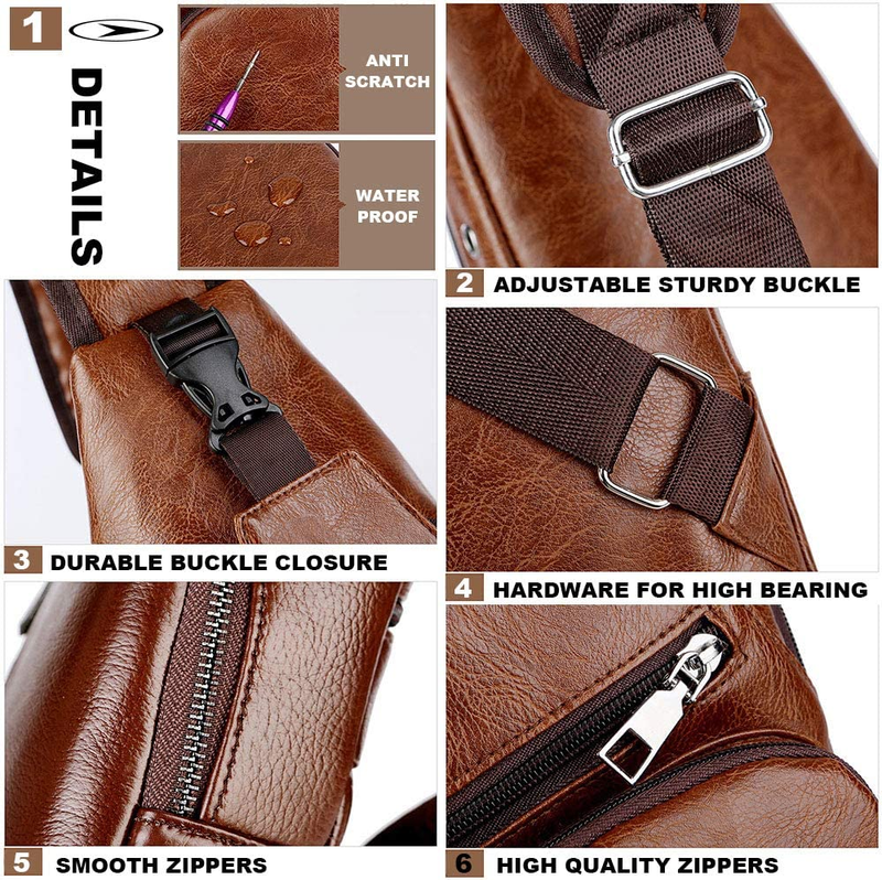 UPGRADED DESIGN - Compared with other ordinary oversized leather sling bag daypacks, our leather chest bag adopts an upgraded design: reinforced strap, flawless, durable, and fashion hardware zippers, multiple organizations, and perfect workmanship make it your best choice! This is great to throw across your body and go. Our leather USB sling backpack bag is made of high-quality leather, durable, strong, sturdy, comfortable, and soft materials.
