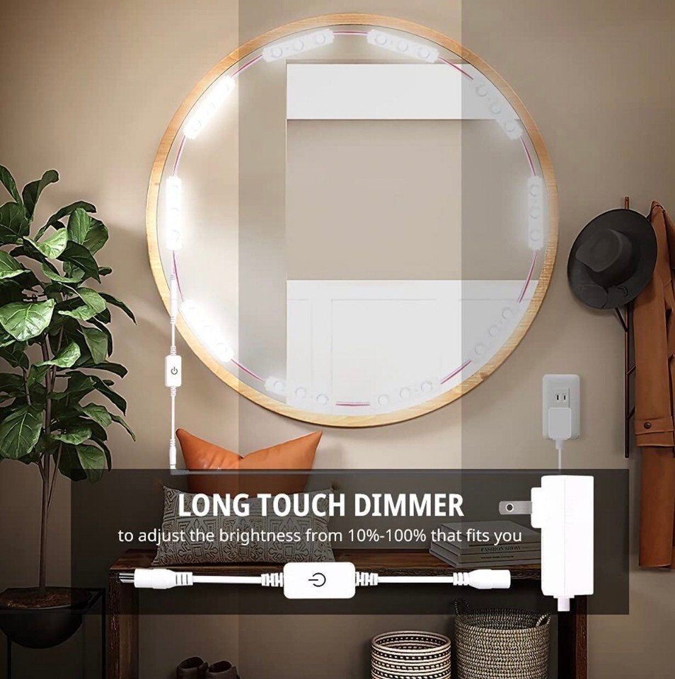 Led Vanity Lights for Mirror, Colorsmoon 10ft Hollywood Style Makeup Mirror Lights, 10 Levels Brightness Dresser Lighting Strip Kit with Dimmer for Vanity Table, Bathroom .